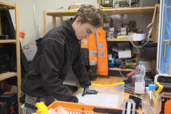 - Montage von Scheiben, Beleuchtungs- und Signalanlagen und Anschliessen der Türöffner, Airbags usw. an die Elektronik